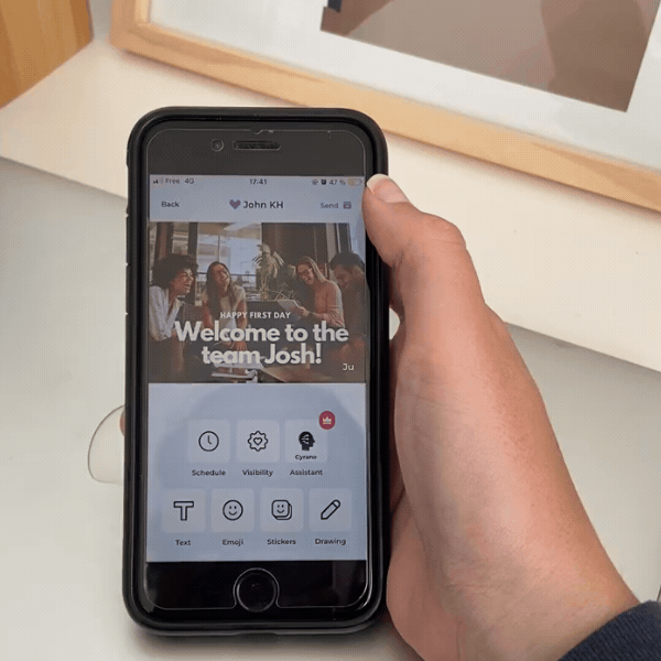 Send photos & messages, to the Alo Spinning Cube via email, our app or web platform.