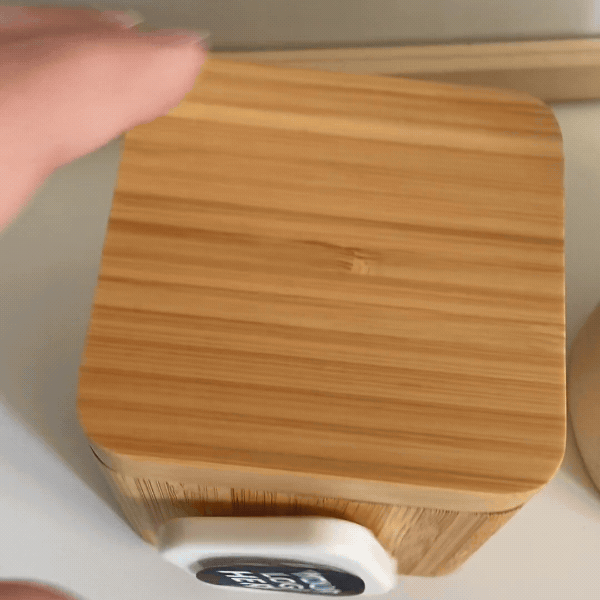 The cube’s front magnet spins when a new message is received, instantly notifying the recipient.